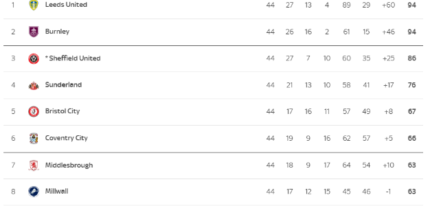 With two rounds left in the league, Bristol City with 67 points and Coventry with 66 points are still at risk of missing the play-offs. Middlesbrough and Millwall both have 63 points and are eyeing the play-off zone!